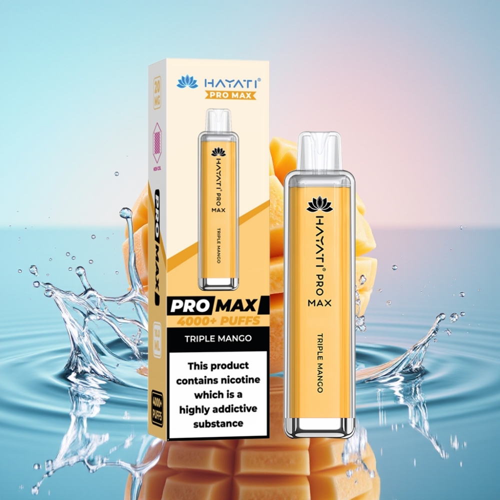 Hayati Pro Max 4000 Puffs Vape Disposable Cu Mango Triplu, 5% Nicotina, Baterie Recarciabila